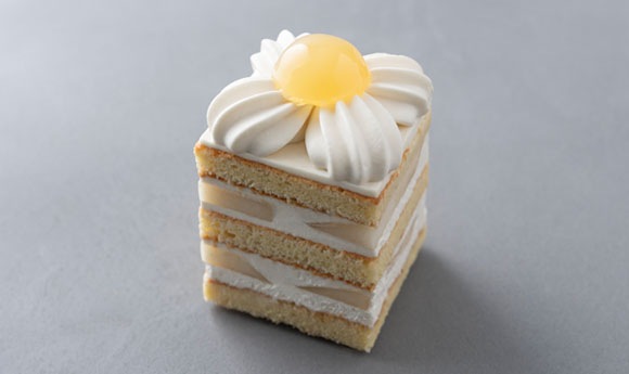 平飼い有精卵とキビ糖を使用した優しいスポンジ生地に香り高く瑞々しい洋梨を合わせました。秋らしい味わいをご堪能ください。