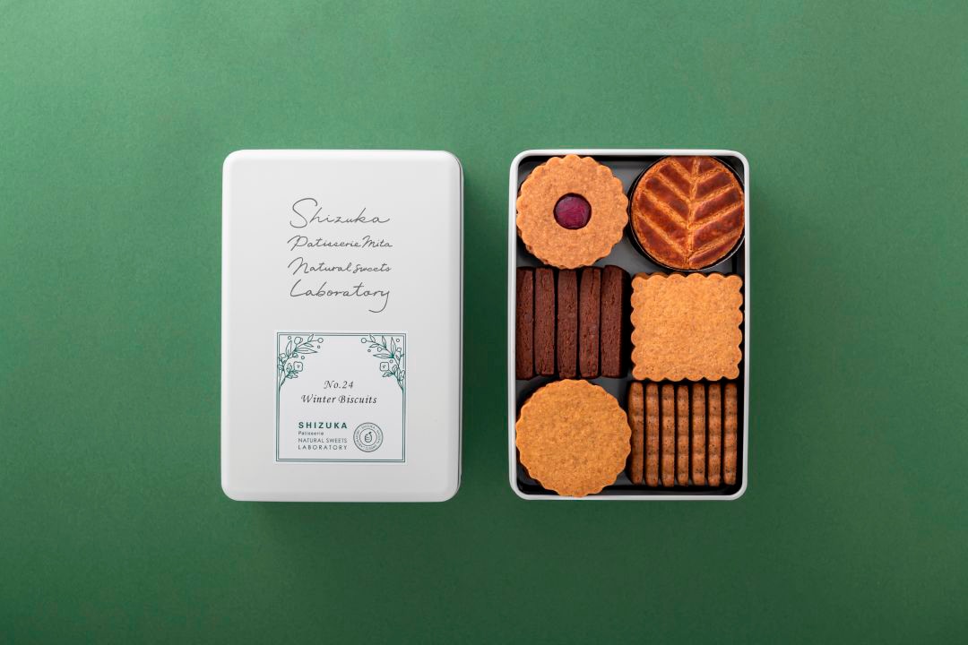 北海道産無農薬栽培のフランボワーズを使用した甘酸っぱいジャムサンド、キビ糖キャラメルと天然岩塩を使用したざくざくな食感のキャラメルビスケット、香り高いベルガモットを有機和紅茶にマリアージュしたアールグレイビスケット、北海道産バターを使用しリッチな食感が楽しめるガレットブルトンヌ等、ギフトにもぴったりの冬期限定のビスケット缶です。